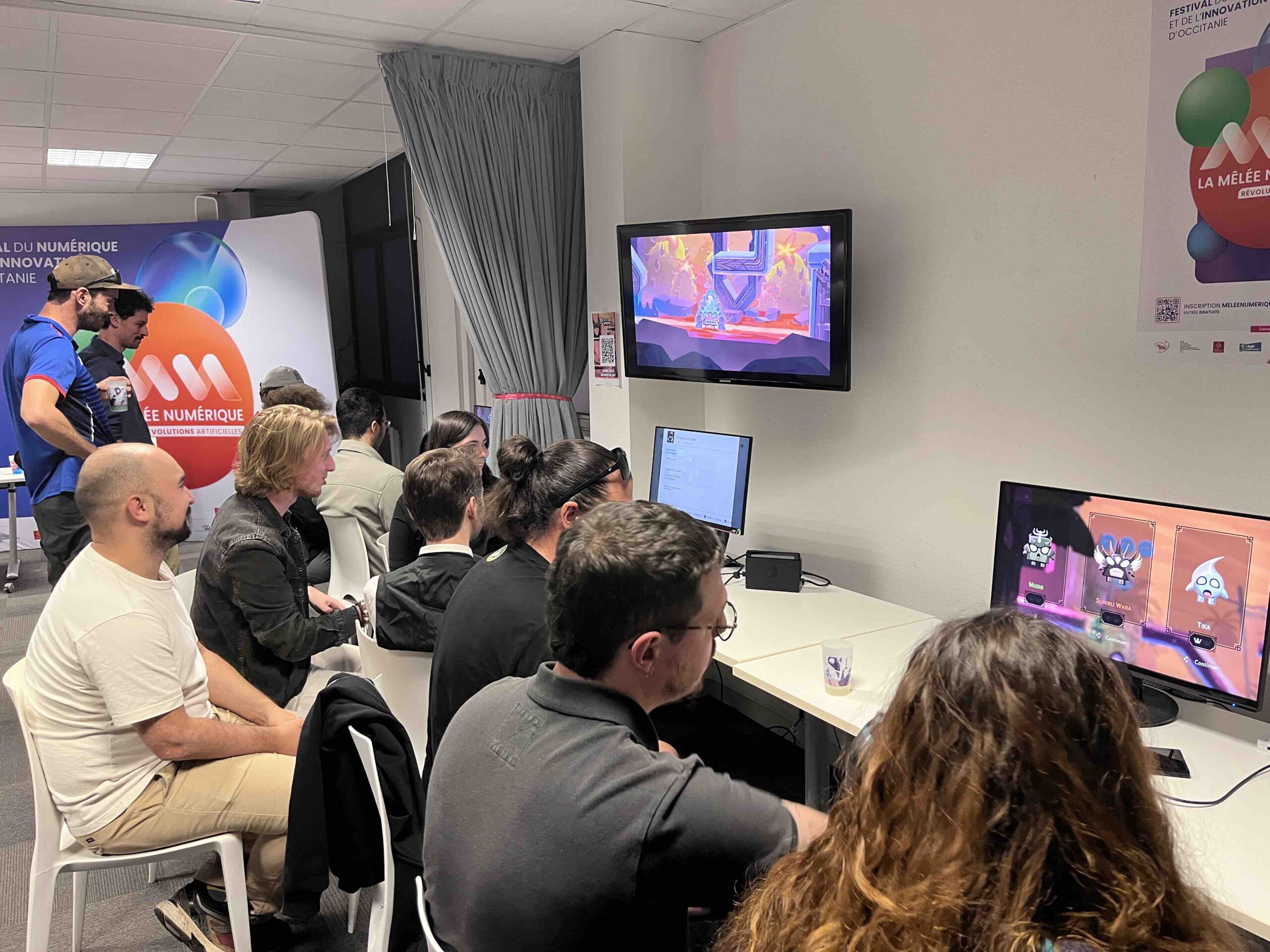 Le 2 octobre dernier, les locaux de La Cantine by La Mêlée ont pris des airs de salle d’arcade improvisée. Sur les écrans, des chamans s’affrontaient à coups d’orbes et de sorts colorés, pendant que les cris de victoire se mêlaient aux rires. Holy Moka Games, jeune studio toulousain, célébrait la sortie de son premier jeu sur Nintendo Switch : Catching Spirits. Un moment de fête et de soulagement pour une équipe qui peaufine son univers depuis plusieurs années.